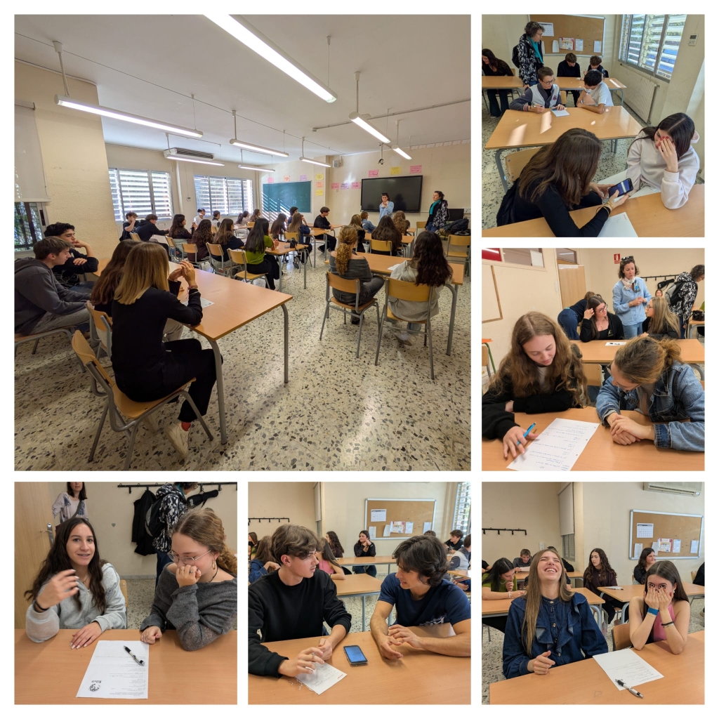 Une fois que la présentation des activités de la semaine en lien avec le projet a été faite, les élèves français ont présenté le questionnaire qu'ils avaient préparé. Les élèves espagnols se sont prêtés au jeu et ensemble ils sont pu identifier de quelle manière ils s'informaient et dans quelle mesure ils s'exposaient à la désinformation.
