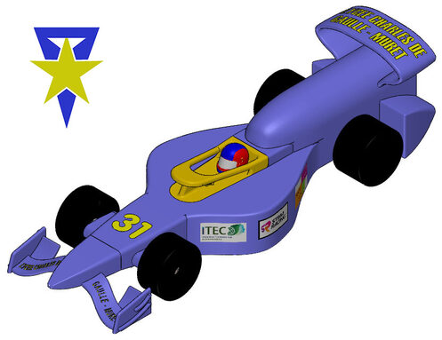 Conçue et fabriquée par notre équipe, notre voiture doit être en conformité avec le règlement de STEM Racing. Le but de participer à des courses sur la piste lors des Finales Régionales et Nationales, propulsée uniquement par une seule cartouche de 8 grammes. Les voitures sont conçues pour parcourir les 20 mètres de course et subir la décélération après avoir franchi la ligne d'arrivée.