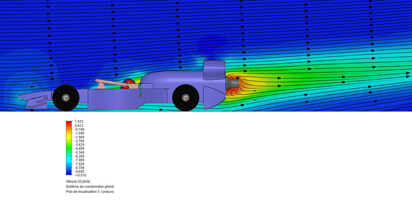 Les lignes de courant sont les courbes de l'espace décrivant le mouvement de l’air autour de la voiture.